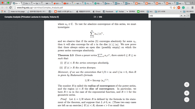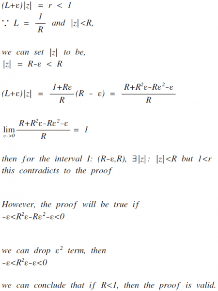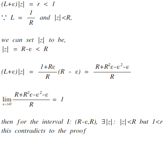 - A participant expresses confusion over a derivation involving (L+eps)|Z|<1, arguing that if |Z|= R-eps, then the condition cannot hold true for all |Z|