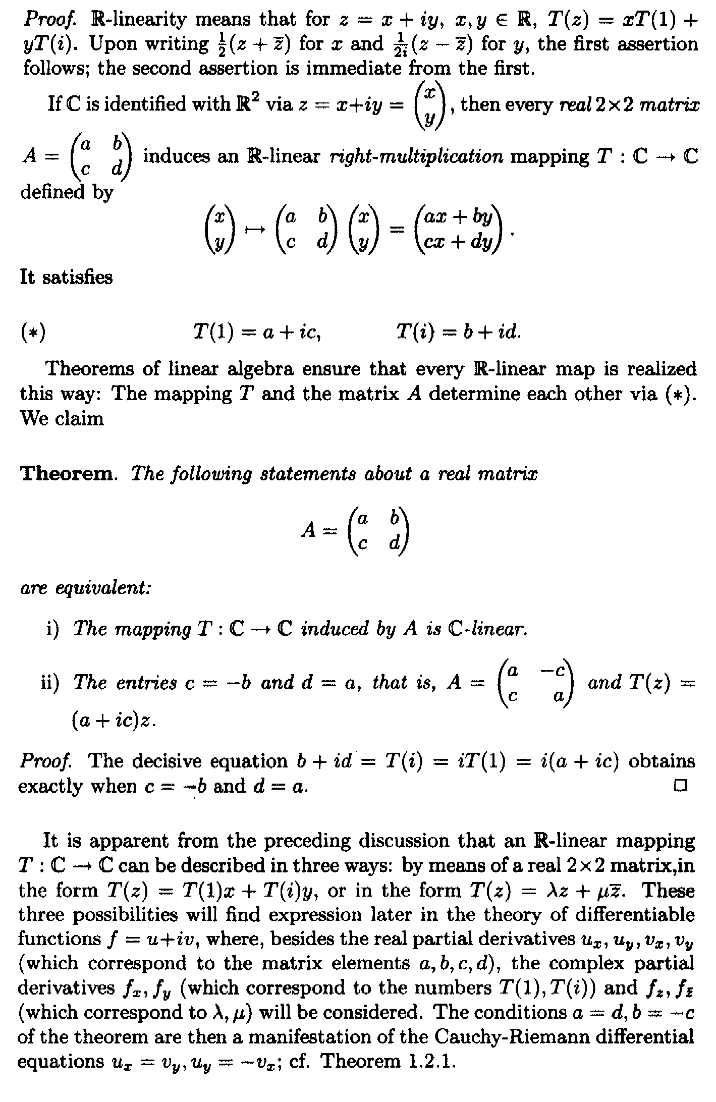 MHB readers of the above post may benefit from access to Remmert's section defining R-linear and C-linear mappings ... so I am providing access to that text ... as follows: