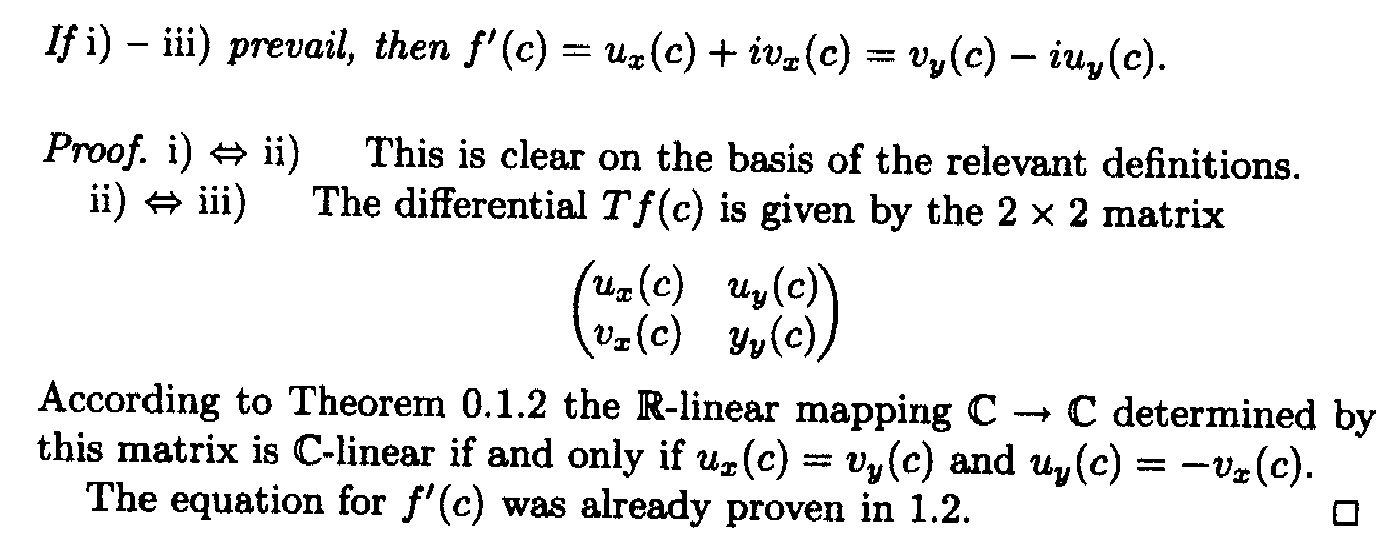 (i) it follows from the limit immediately above and (1) that complex-differentiable mappings are real differentiable ... ...