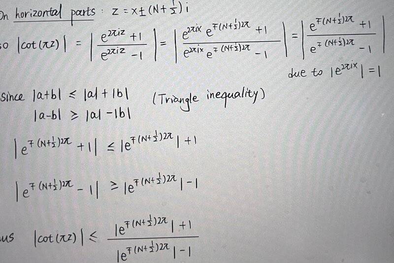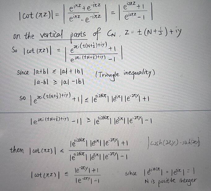 - Study the properties of |\cot \pi z| and its behavior in complex analysis.