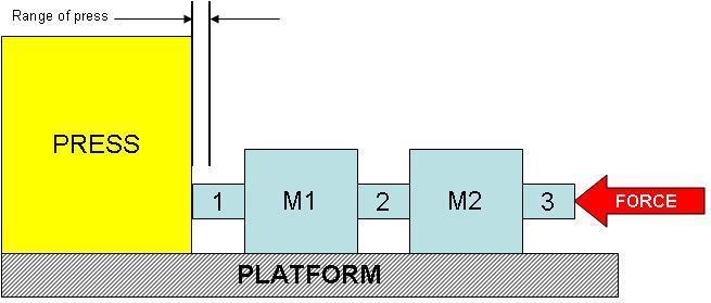 2) At one point the press goes against F2 and at another point they work together. How does that impact the relative values of the forces measured by each load cell?