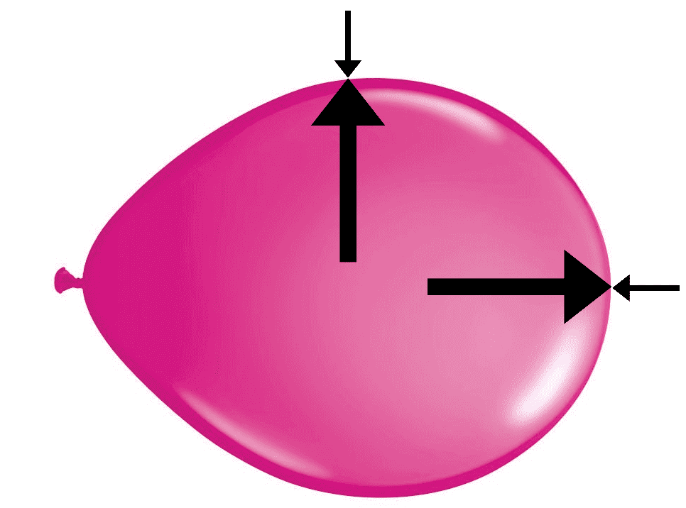 A spherical rubber balloon inflated with air is held stationary, with its opening, on the west side, pinched shut. (a) Describe the forces exerted by the air inside and outside the balloon on sections of the rubber.