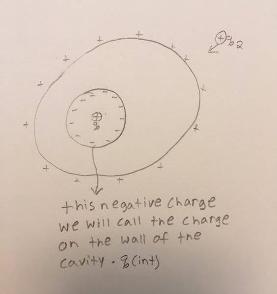 The issue that I am having is when you bring q2 close to the conducting sphere, my intuition tells me that the charge on the wall of the cavity q(int) should redistribute throughout the conductor, leaving no excess charge anywhere on the conductor? However, the correct answer is the surface charge on the wall of the cavity q(int) doesn't change. Any help would be much appreciated!