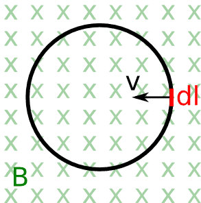 From the statement I know that: B⊥v, (B x v) // dl and B // ds.