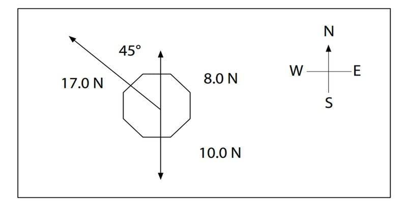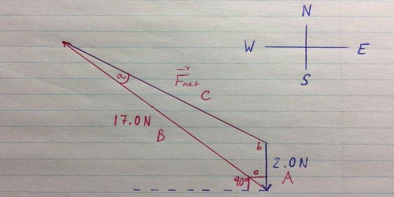 Therefore, the net force is 15.6N (S 50.4 W) West of South