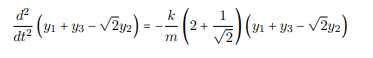 d 2 /dt2 (y1 + y3 + √ 2y2) = − k / m (2 − 1/ √ 2 ) (y1 + y3 + √ 2y2)