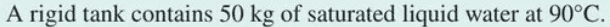 They've not mentioned that the water fills the tank. So I don't understand why the specific volume times the mass of the water equals the volume of the tank?