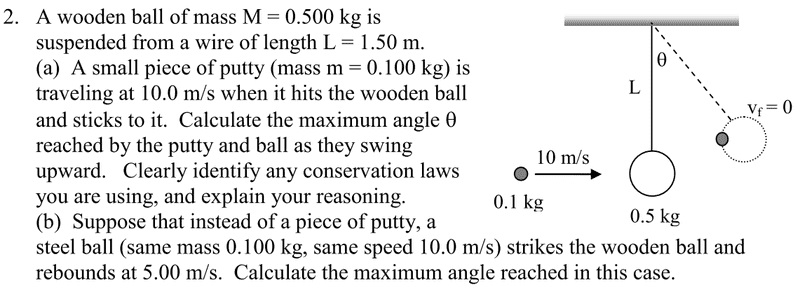 The discussion focuses on applying conservation laws to solve a kinematic problem involving a collision between putty and a wooden ball. Key conservation laws mentioned include the conservation of momentum and the conservation of energy. The conservation of momentum states that the total momentum before the collision equals the total momentum after the collision, expressed as Mputty*Vputty = (Mputty+Mball)*V. The conservation of energy relates potential energy (PE = mgh) to kinetic energy (KE = (mv^2)/2) to determine the height the combined mass can rise after the collision.