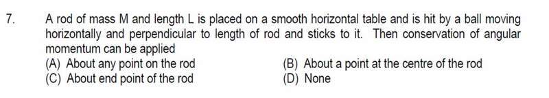 There is an ongoing exploration of multiple interpretations of the problem, with some participants providing insights into the conservation principles while others express uncertainty about the test booklet's explanations. Guidance has been offered regarding the relationship between impulse and angular momentum.