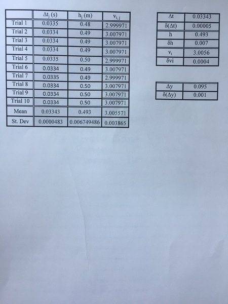 I am finishing up a lab write up for conservation of energy, where we launched a projectile into the air and measured the initial velocity and height of the projectile. ( 10 trials)