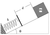 A 4.0 kg block starts at rest and slides a distance d down a frictionless 35.0