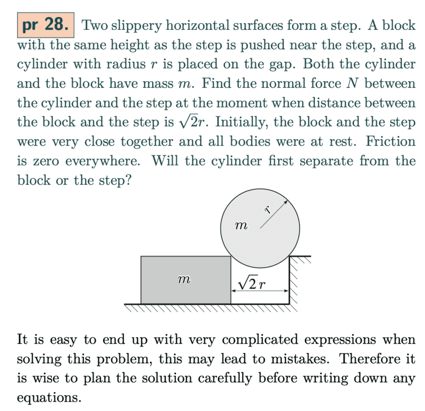 However, I viewed the cylinder as rotating about the point of contact with the step, and thus thought that its KE was 1/2Iw^2, where I = 3/2mr^2 (by parallel axis theorem), and rw = v, where v is the velocity of the centre of mass.