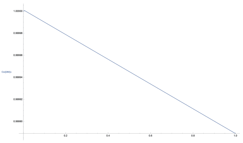 All the variables are as in the original equation except for OmegaRabi which is equal to ##dE_0##. The output of this code (which would be the total probability i.e. ##|x(t)|^2+|y(t)^2|##) should be constant 1. However I get what is seen in the plot below. I assume this has to do with some rounding numerical errors (?). Is there a way to fix it and ideally have it deviate from 1 much slower as a function of time? I am interested in the ##|y(t)|^2## as a function of time, and if one looks at that, the values for it are around 0.00002, so currently the error after one second seems to be 5 times bigger than the value I am interested in.