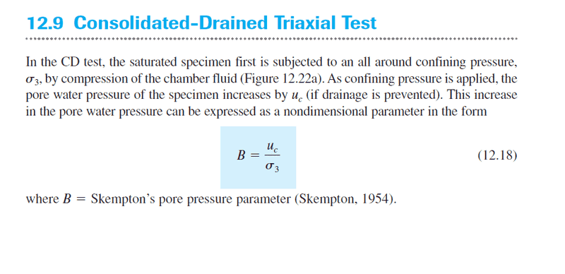 The discussion revolves around the Consolidated Drained Triaxial Test, focusing on the interpretation of stress components, pore pressure effects, and the behavior of transverse stress during the test. Participants are examining specific equations and conditions related to the test setup and results.