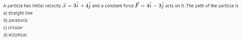 So I can conclude that the path in the problem is parabolic i.e option b) which is indeed the given answer .