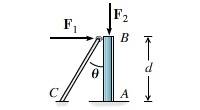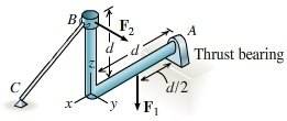 Which of these bodies has redundant constraints for the given loading conditions? F_1 and F_2 are applied, known forces. In the first choice, the support at A is fixed and a cable connects points B and C. In the second choice, the support at A is a smooth pin, and a cable connects points B and C. In the third choice, the support at A is a single thrust bearing, and a cable connects points B and C.