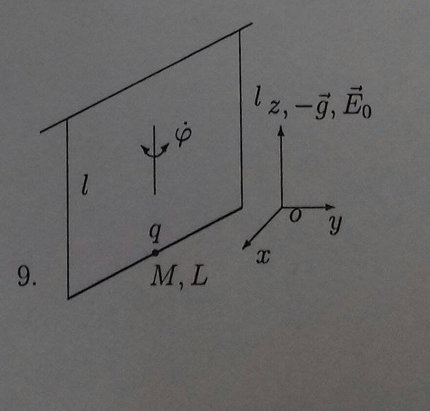$$- e l q \sin{\left (\varphi \right )} - g l M \left(- \cos{\left (\varphi \right )} + 1\right) + \frac{L^{2} M}{2} \left(\dot {\varphi}^{2} + \left(- \cos{\left (\varphi \right )} + 1\right)^{2}\right) = {\mathcal {L}}$$I'll appreciate any help.