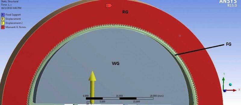 This model has 3 components: flexible gear(FG), wave generator(WG) and rigid gear(RG)