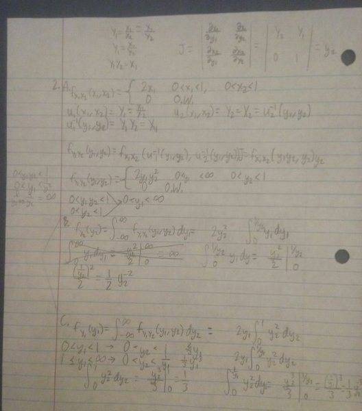 The discussion centers on the evaluation of a joint probability density function (pdf) for continuous random variables, specifically addressing the support conditions of the variables y1 and y2. The user confirmed that their joint pdf was initially deemed correct, but the support was incorrectly stated as 0