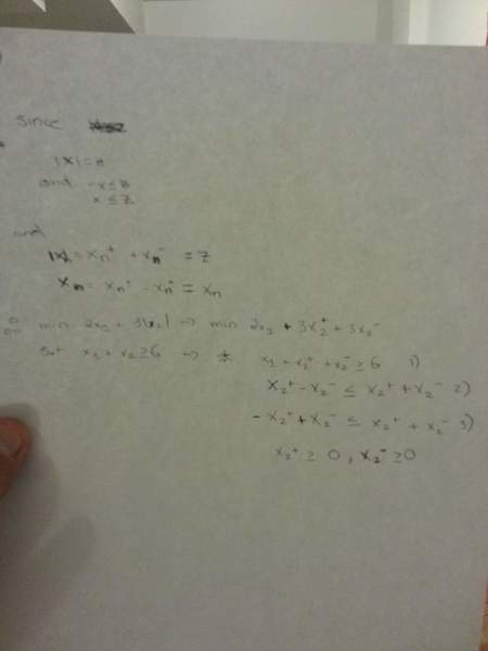 - Participants discuss different methods for handling absolute values in linear programming, including replacing absolute values with new variables and adding constraints. There is confusion regarding the correct formulation and the implications of the constraints on the variables involved.