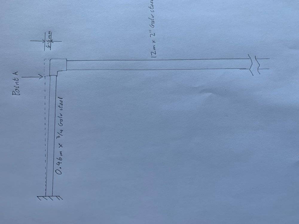 Unless I’m wrong, the force on point A is dependent on the amount of displacement on the 2” steel (6.6mm 2” steel pipe), length of the off take (640mm of 3/4 steel pipe) and the flexibility of the material being used.