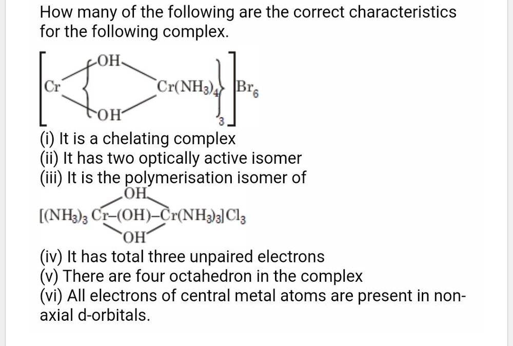 (iv) It has total three unpaired electrons (v) There are four octahedron in the complex
