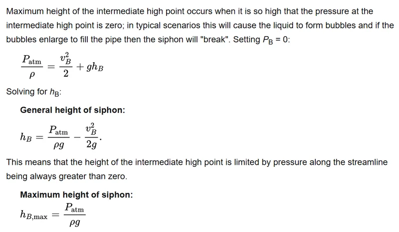 (iii) Pressure A is equal to pressure B to make the siphon work
