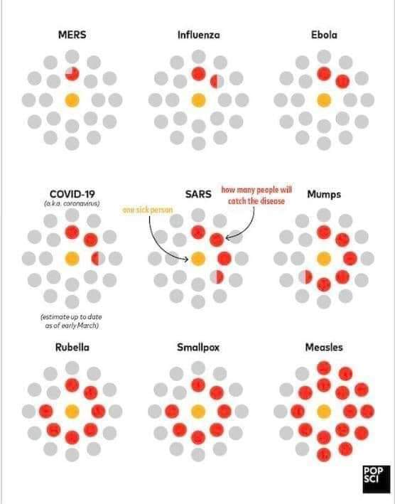 Here are some numbers to put it in perspective. With N=20, and with the low to high estimates for R0, we get: