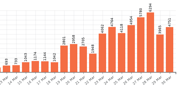 I notice there is still a major discrepancy in the death rate for the USA and Germany, as compared with other western countries that are suffering from a large number of cases. Italy and Spain are already very bad and I can't see any hope for the UK not to suffer to the same extent. It's only a matter of time.