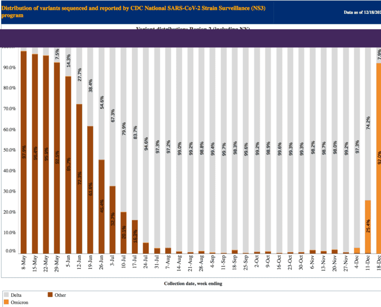 Yes, I agree with the dramatic increase, I'm trying to reconcile the CDC Region 2 reporting 92% Omicron as compared to NY State, which heavily weights in Region 2, at 11% Omicron for the two week period ending 18-December. I'd like to know more about the measurements and weighted averaging.
