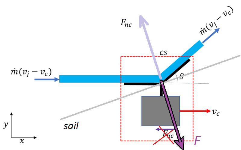 $$F_x = \dot m ( v_j -v_c ) \cos \theta - \dot m ( v_j -v_c )$$