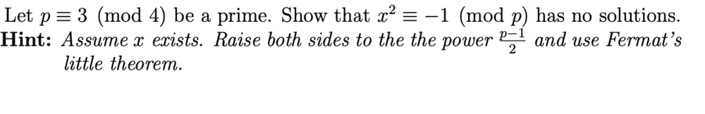 The solutions are not integers, which are undefined for the modulo operation. therefore x^2=-1(modp) have no solutions.