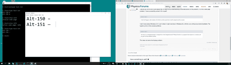 Participants express differing views on whether the issue is related to font settings, code page configurations, or Windows versions. No consensus is reached, and multiple competing explanations remain in the discussion.