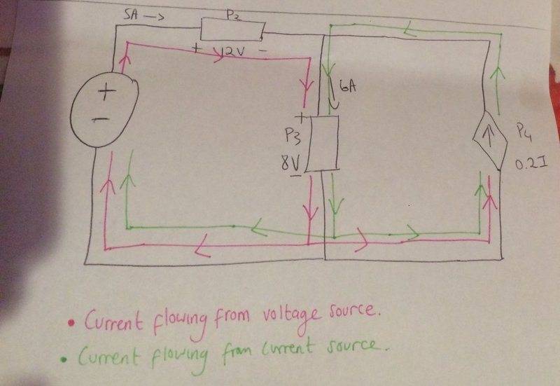 - One participant seeks clarification on whether their understanding of current flow in a two-source circuit is correct, specifically regarding the direction of current flow.