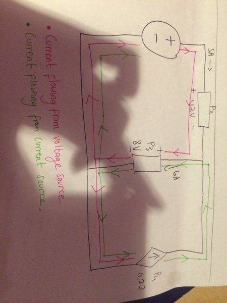 Current flow in a two source circuit