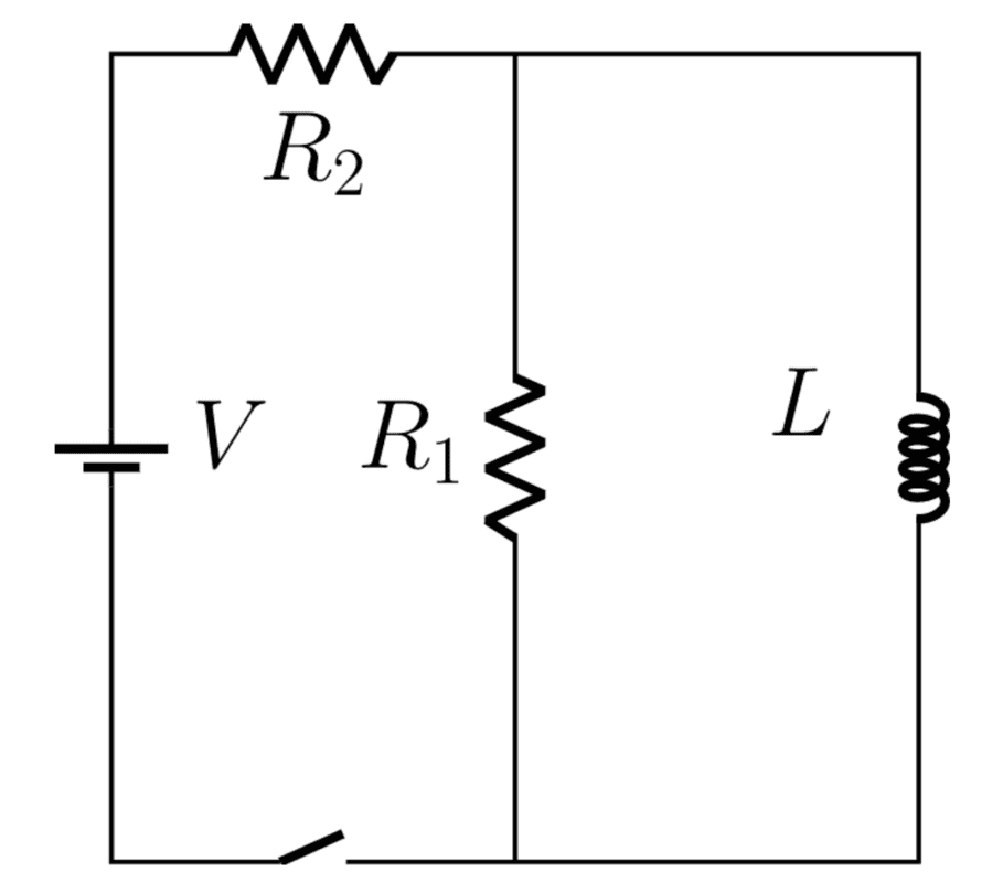 Values of ##V##, ##R_1##, ##R_2## and ##L## are given.