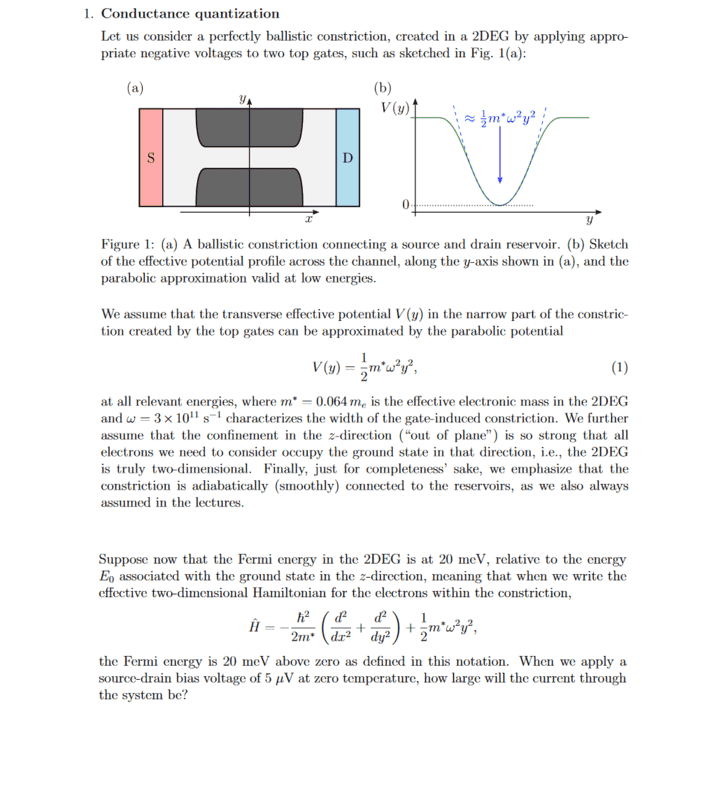 Find current through ballistic 2DEG channel assuming a parabolic potential in the channel