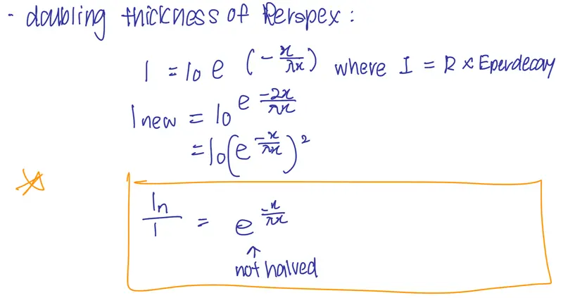 - Participants are exploring the mathematical relationships governing intensity reduction with varying thickness of shielding. There are questions about the clarity of notation and the assumptions regarding the original thickness of the shielding. Some participants are attempting to clarify how the exponential decay applies to the problem and whether the original thickness is a half-thickness.