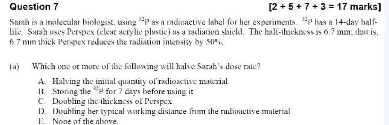 There is a lack of information regarding the original thickness of the shielding, and participants are questioning the assumptions made about the relationship between thickness and dose rate. The applicability of the exponential relationship to different types of radiation is also under scrutiny.