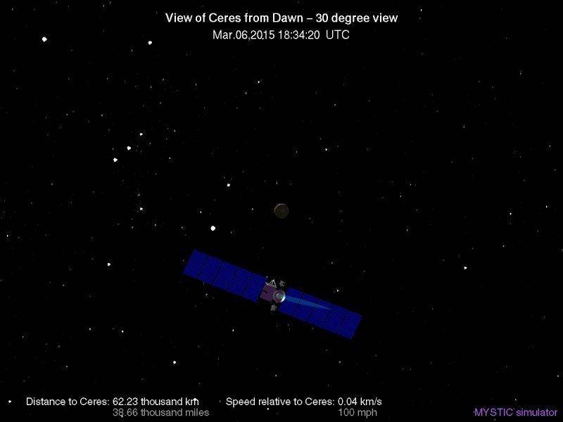 Current status (11am pacific on 4 March) gives the speed relative to Ceres as 51.4 m/s at 57 kkm.