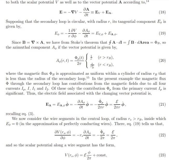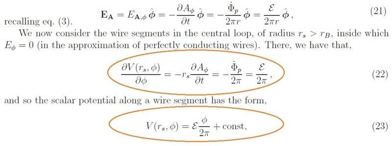 The last equation ##V=\epsilon \frac \phi {2 \pi}+const## is obviously false, because here V for angle zero is either undefined or experiances a leap. But any scalar potential function has to be continuous.alan123hk said:As is the case in this paper http://kirkmcd.princeton.edu/examples/lewin.pdf , the same circuits are also described with potentials. Quoted below.