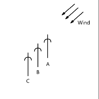 According to the answer sheet, confusingly enough, the answer is cyclist B. What I can make up from the situation is that cyclist A catches up a significant amount of the oncoming wind force, which favors cyclist B in that he or she has to put in less effort against the wind force. The x as well as y component of the wind force are reduced, meaning that the "v^2" in "FD" and thus "FD" becomes smaller. So far, so clear. However, I do not get it why it is not cyclist C who profits the most of drag-reduction, as cyclist B catches up a great amount of the wind that passes by cyclist A, wherefore C should face the oncoming wind even less than B. Wondering what I am doing wrong. The only reason I can think of is the fact there are three arrows and that that might be explanatory for B profiting more from slipstream compared to C, but I fail to make a logical conclusion.