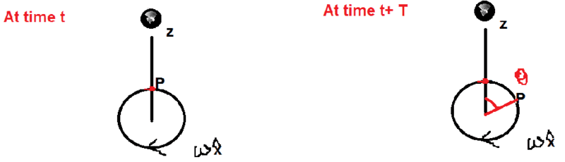 Now, since the Earth is rotating with constant angular velocity, PA = ## \omega R T##, where T is the time of the fall.