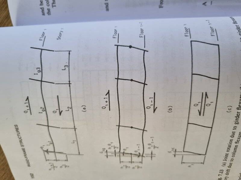 Thus, my question to you is, how was this equation derived? Could someone very clever on this forum attempt to have a go at it? The main reason I want this is because like the bottom storeys, the top storey points of contraflexure do not occur at the mid height. And I want to calculate the shear rigidity at the top storey. Unfortunately Stafford-Smith and Coull to not give the equation for the shear rigidity at the top storey. Once I get this I can proceed with my analysis of approximately calculating the shear in the columns.