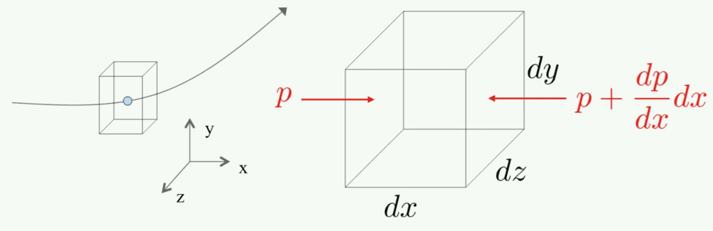 - One participant questions the origin of the term '##+dp##' in the context of pressure variation across a box defined by dimensions ##dx##, ##dy##, and ##dz##.
