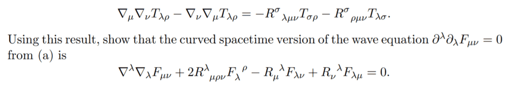 - Participants explore the relationship between covariant derivatives and the electromagnetic tensor, questioning the clarity of the starting point for the derivation. There is a mention of the reduction of expressions in Minkowski coordinates, and one participant reflects on the importance of the commutation of covariant derivatives.