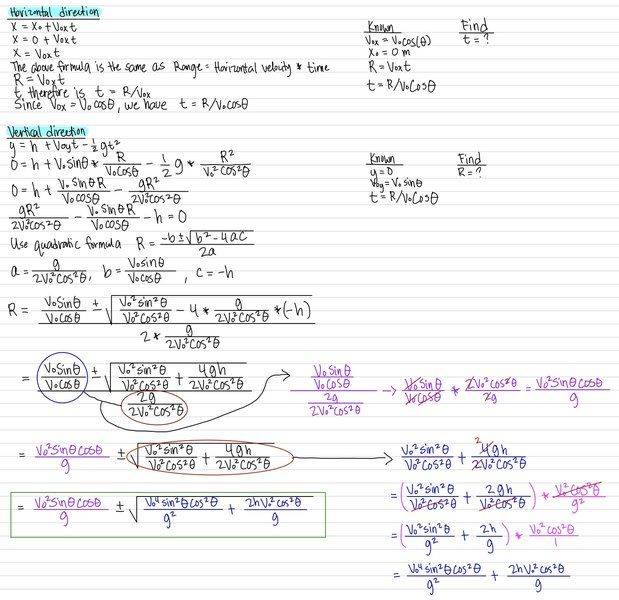 So basically I took vertical direction formula and I solved for "t". I then took the horizontal direction formula and solved for "x" or we can also call x the "Range" since that's what the problem is asking for. Is this right?