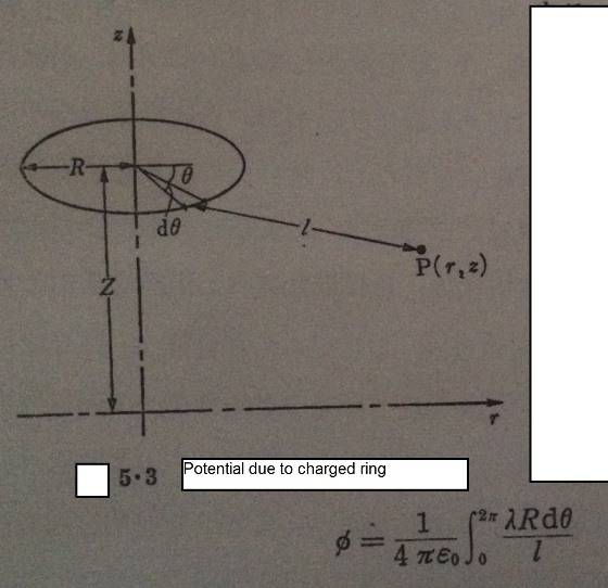 In the equation, l is the distance between the part of the ring charge dθ and P.