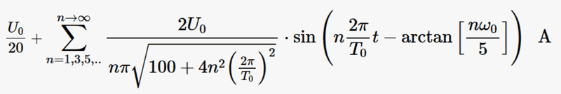 i(t) = \textbf{I}_{0} + \displaystyle \sum_{n=1}^{n \to \infty} \Big|\textbf{I}_{n} \Big| \cos(n\omega_{0} t + \phi_{2})