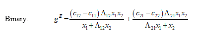 I'm in the process of deriving the Wassiljewa mixture model equation for a binary solution. I have to find an expression gE which represents the excess g term which is added to gIS, the ideal solution, to predict the g for a real solution. I have gotten up to a point but now I'm stuck.